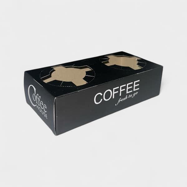Χάρτινη βάση μαύρη με σχέδιο “coffee fresh to go” για μεταφορά 2 ποτηριών. Είναι κατασκευασμένη από ανακυκλώσιμο χαρτί. Έχει σχεδιαστεί για να συγκρατεί και να μεταφέρει 2 ποτήρια με καφέ, χυμό, ή άλλα ροφήματα με ασφάλεια και ευκολία. Προσφέρει σταθερότητα και αποτρέπει τυχόν διαρροές κατά την μεταφορά. Κατάλληλο για delivery και take away. Πιστοποιημένο προϊόν για επαφή με τρόφιμα. Ιδανικό για χάρτινα και πλαστικά ποτήρια.
