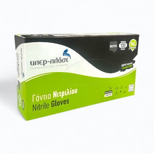 Γάντια Νιτριλίου Μίας Χρήσης Μαύρα XL Χωρίς Πούδρα 100τμχ