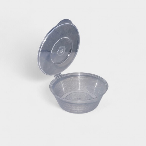Πλαστικό διάφανο δοχείο 180ml για sauce με ενσωματωμένο καπάκι. Κατάλληλο για κρύα συνοδευτικά όπως σως, σάλτσες, dressings, dips κ.α. Διαθέσιμα σε διάφορα μεγέθη. Πλήρης στεγανοποίηση για ασφαλή μεταφορά φαγητού. Πιστοποιημένο προϊόν για επαφή με τρόφιμα. Κατάλληλο για delivery & take away.