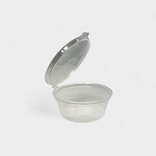 Πλαστικό διάφανο δοχείο 70ml για sauce με ενσωματωμένο καπάκι. Κατάλληλο για κρύα συνοδευτικά όπως σως, σάλτσες, dressings, dips κ.α. Διαθέσιμα σε διάφορα μεγέθη. Πλήρης στεγανοποίηση για ασφαλή μεταφορά φαγητού. Πιστοποιημένο προϊόν για επαφή με τρόφιμα. Κατάλληλο για delivery & take away.