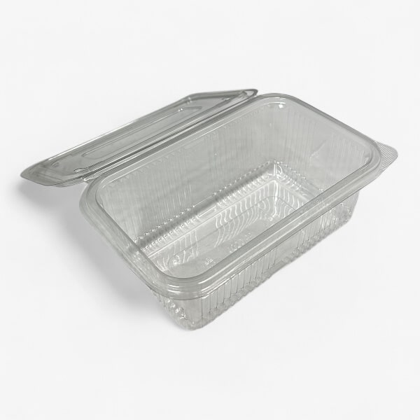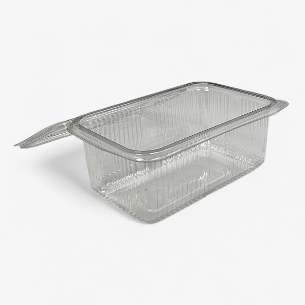 Πλαστικό διάφανο σκεύος PET 1000cc με ενσωματωμένο καπάκι και κλείσιμο ασφαλείας. Κατάλληλο για κρύα φαγητά όπως σαλάτες, ξηρούς καρπούς, προϊόντα άρτου κ.α. Το υλικό PET είναι υψηλής ποιότητας πλαστικό και πλήρως ανακυκλώσιμο. Πιστοποιημένο προϊόν για επαφή με τρόφιμα. Κατάλληλο για delivery & take away. Πλήρως συναρμολογημένο, προκειμένου να παρέχει στον επαγγελματία ταχύτερη τοποθέτηση του προϊόντος. Διαθέσιμα σε διάφορα μεγέθη.