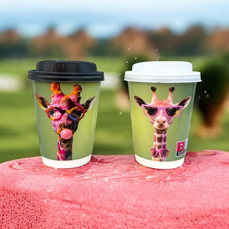 Χάρτινα Διπλότοιχα Ποτήρια Mix 12oz (Stylish Animals) . Κατάλληλα για ζεστά και κρύα ροφήματα όπως cappuccino, τσάι, freddo espresso, χυμούς κ.α. Τα διπλότοιχα ποτήρια έχουν διπλή επένδυση, με αποτέλεσμα να έχουν ιδιαίτερη αντοχή στην θερμοκρασία αλλά και στην υγρασία. Κατάλληλα για delivery & take away. Πιστοποιημένο προϊόν για επαφή με τρόφιμα. Το κιβώτιο περιλαμβάνει και τα 3 σχέδια ανάμεικτα.