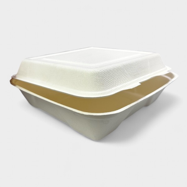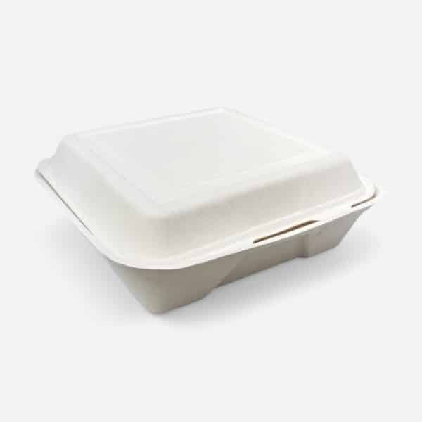 Βιοδιασπώμενο σκεύος από Ζαχαροκάλαμο για μερίδα burger για ζεστά και κρύα φαγητά όπως burger, sushi, πατάτες, σαλάτες κ.α. Η συσκευασία είναι κατάλληλη για φούρνο μικροκυμάτων καθώς και για κατάψυξη. Είναι 100% οικολογικό και βιοδιασπώμενο σκεύος κατασκευασμένο από ζαχαροκάλαμο. Μετά τη χρήση, η συσκευασία μπορεί να απορριφθεί σε κάδους με οργανικά απόβλητα. Πλήρως διαμορφωμένο και έτοιμο για χρήση, προκειμένου να παρέχει στον επαγγελματία ταχύτερη τοποθέτηση του προϊόντος. Το κουτί διαθέτει ενσωματωμένο καπάκι. Διαθέσιμο σε διάφορα μεγέθη.