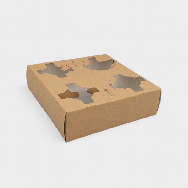 Χάρτινη kraft βάση για 4 ποτήρια. Εξασφαλίζει την ασφαλή μεταφορά ποτηρίων. Οικολογική συσκευασία απο κραφτ χαρτί. Κατάλληλο για delivery και take away. Πιστοποιημένο προϊόν για επαφή με τρόφιμα. Ιδανικό για χάρτινα και πλαστικά ποτήρια.