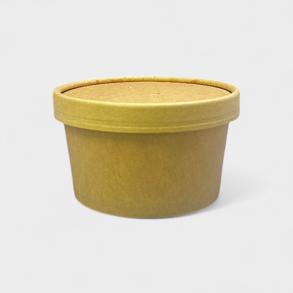 Χάρτινο Δοχείο Κraft Καφέ Στρογγυλό 435ml . Ιδανικό για take away & delivery ζεστών και κρύων τροφίμων όπως σούπες, noodles, ζυμαρικά, παγωτά κ.α. Είναι κατασκευασμένο από υψηλής ποιότητας χαρτιού, με εσωτερική πλαστικοποίηση εξασφαλίζοντας την αδιαβροχοποίηση. Το καφέ kraft υλικό είναι κατασκευασμένο από αλεύκαστο φυσικό καφέ kraft χαρτί και είναι μια φιλική προς το περιβάλλον και οικονομική επιλογή. Συνδυάζεται με χάρτινο κραφτ καπάκι καθώς και με διάφανο πλαστικό καπάκι. Πιστοποιημένο προϊόν για επαφή με τρόφιμα. Πλήρως διαμορφωμένο και έτοιμο για χρήση, προκειμένου να παρέχει στον επαγγελματία ταχύτερη τοποθέτηση του προϊόντος. Διαθέσιμο σε διάφορα μεγέθη.