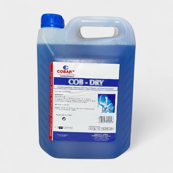 Υγρό Στεγνωτικό – Γυαλιστικό Πλυντηρίου Πιάτων 4lt. Συμπυκνωμένο στεγνωτικό – γυαλιστικό υγρό πλυντηρίου πιάτων και ποτηριών. Ιδανικό για πλύση σε πολύ σκληρά νερά. Μειώνει το χρόνο στεγνώματος καθώς γυαλίζει ποτήρια, πιάτα και σκεύη. Προλαμβάνει τις αποθέσεις αλάτων στα μπεκ. Διαλύεται αμέσως και δεν είναι διαβρωτικό. Δοσολογία 1-3 ml ανά λίτρο νερού.
